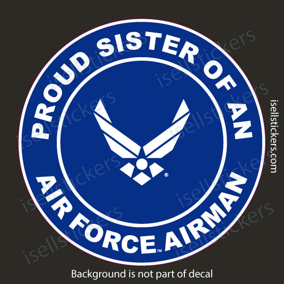 Proud Sister of an Air Force Airman Military USAF Bumper Sticker Window Decal Blue AF-1083